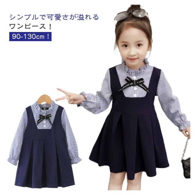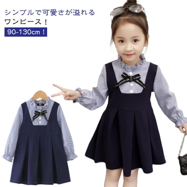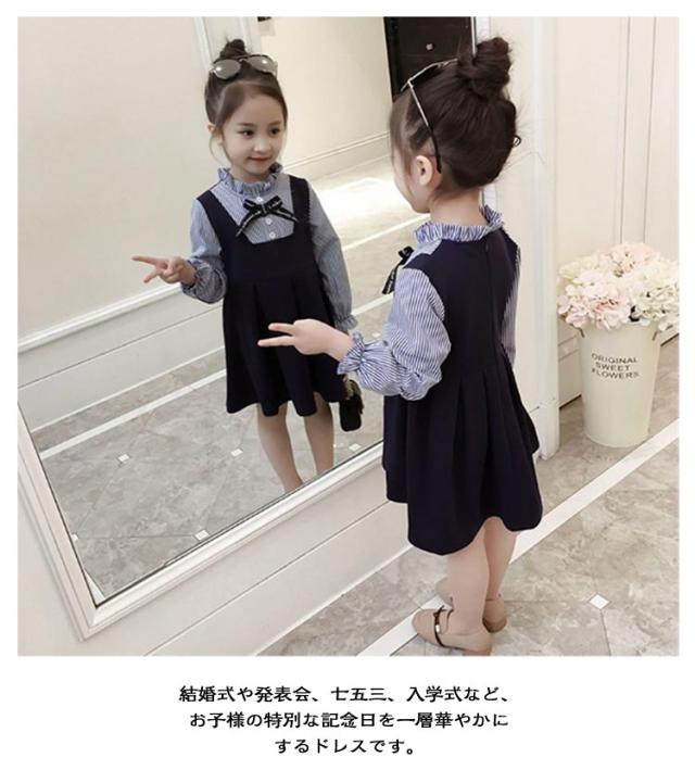 フォーマルワンピース キッズ ドレス 保育園 ワンピース フォーマル フォーマルワンピース 女の子 レイヤード スーツ ブラウスワンピース 可愛い キッズ ストライプ柄 卒園式 子供服 90 保育所 入学式 卒園式 入園式 発表会 送料無料 退所式 華やか 100 110 120 130 140