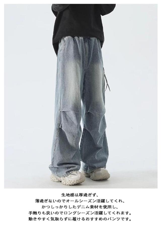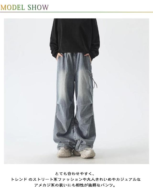 バギーパンツ カーゴパンツ デニム デニムパンツ デニム ウエストゴム メンズ ワークパンツ ジーンズ 大きいサイズ ボトムス デニム ワイドパンツ ジーパン ゆったり ストレート おしゃれ カジュアル ダンス衣装 ヒップホップ ストリート系 B系 男女兼用 春 夏 秋