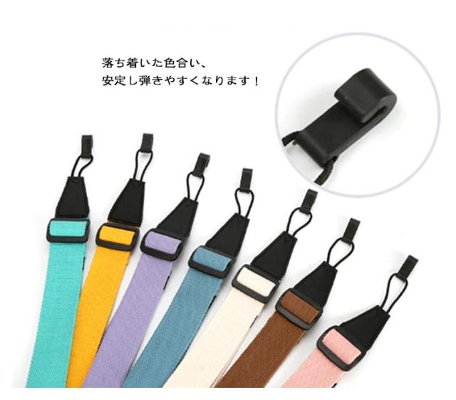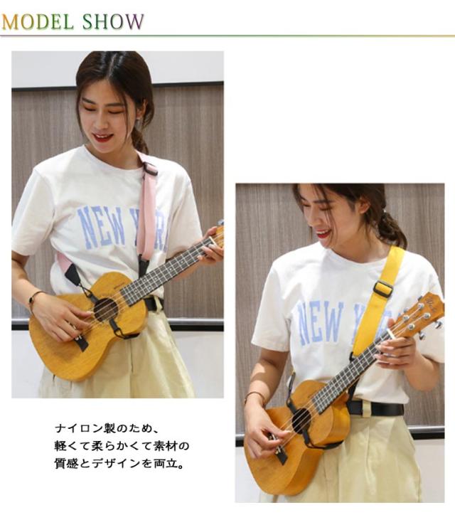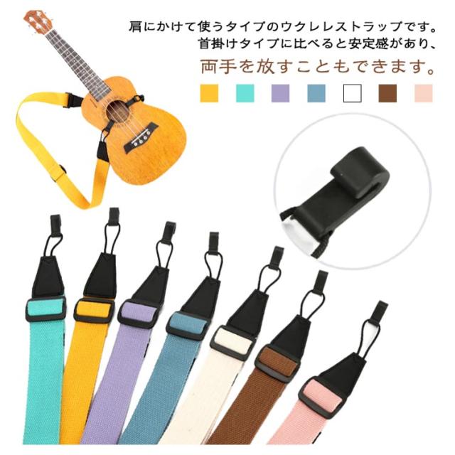 | 肩にかけて使うタイプのウクレレストラップです。首掛けタイプに比べると安定感があり、両手を放すこともできます。 ナイロン製のため、軽くて柔らかくて素材の質感とデザインを両立。 落ち着いた色合い、安定し弾きやすくなります! | |