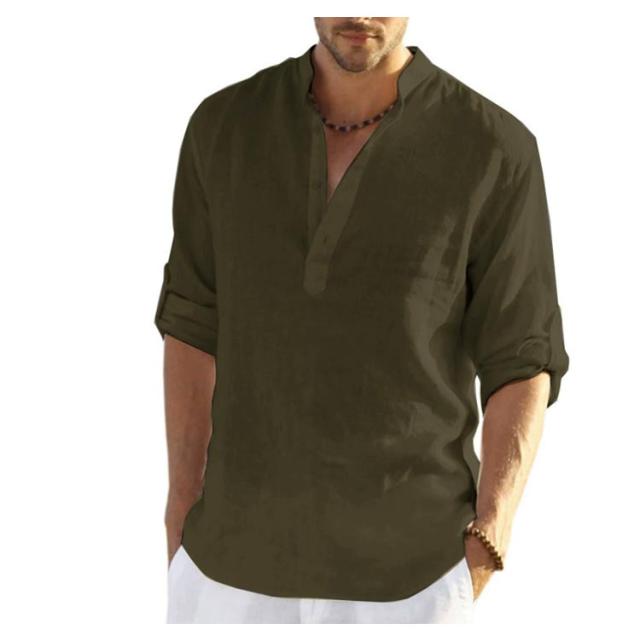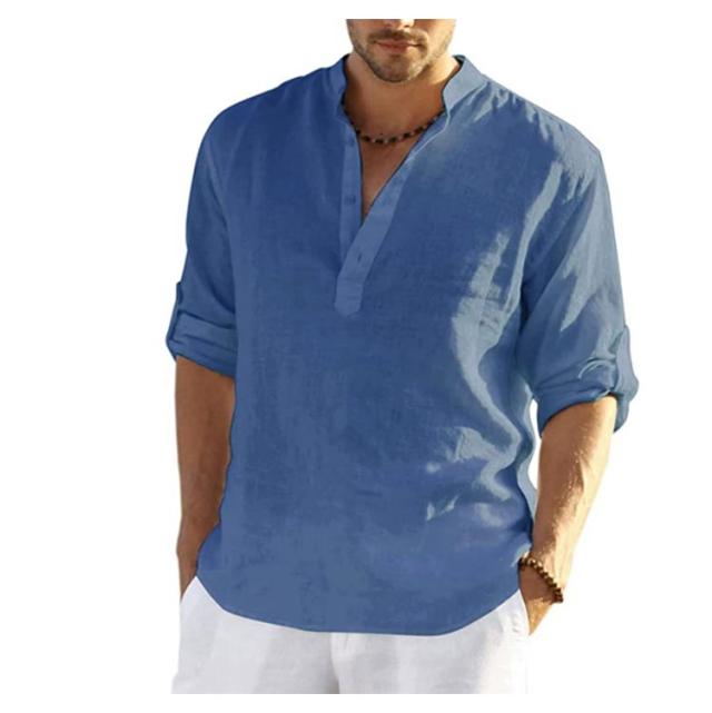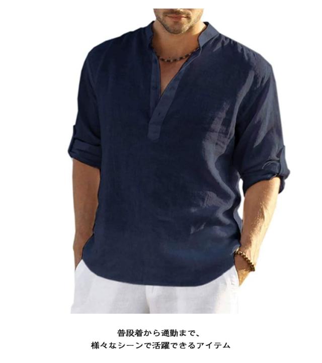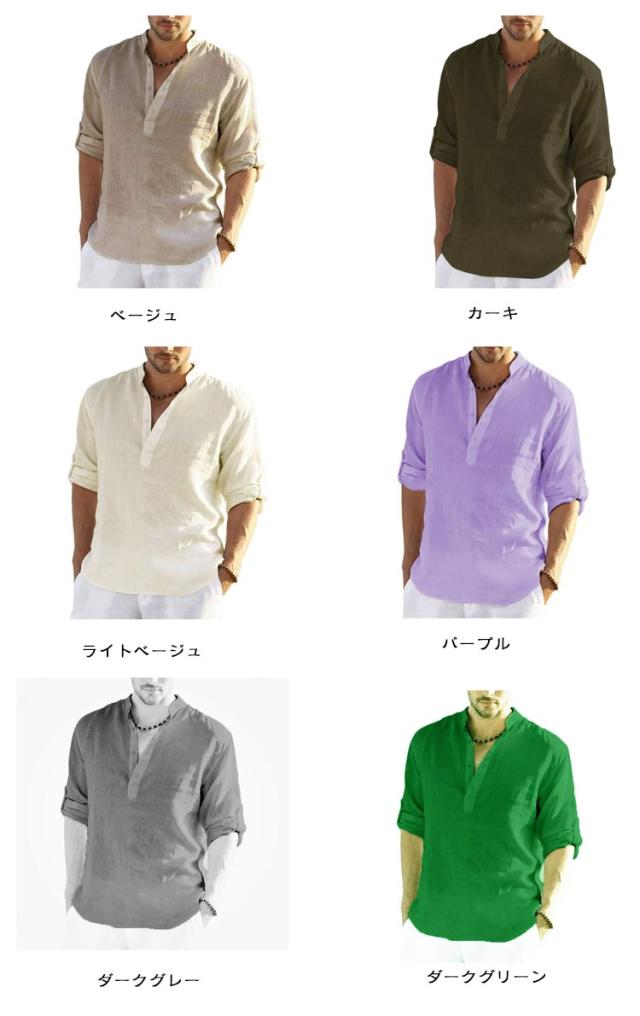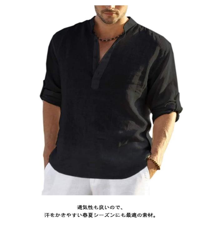 リネンシャツ 七分袖 麻 無地 ヘンリーネック リネン お兄系 半袖 シャツ ホワイト 立ち襟 綿麻シャツ ブルー 男性用 通勤 メンズ 夏用 カジュアル 通学 大きいサイズ 綿麻tシャツ ベージュ グリーン シャツ ピンク グレー カーキ ブラック ネイビー