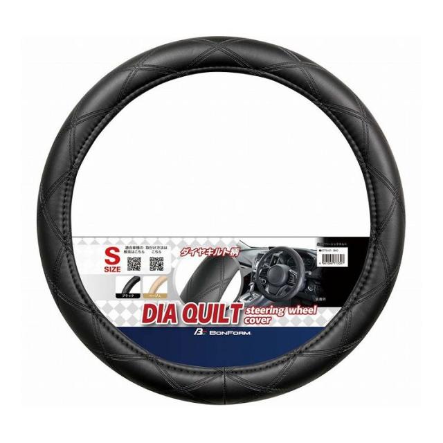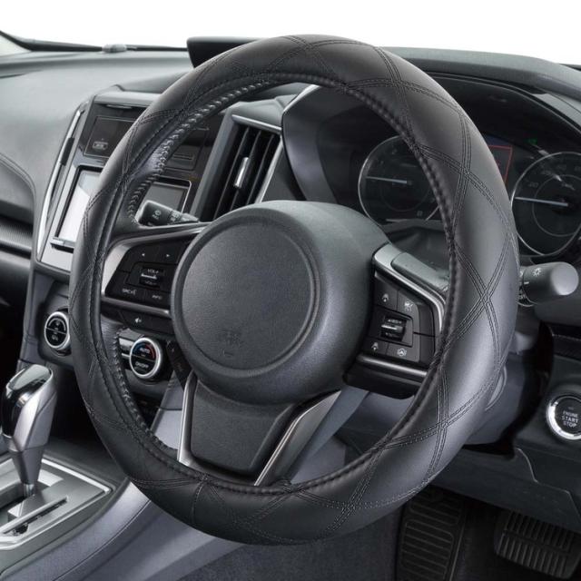 ●キルティング風のデザイン素材を使用したハンドルカバー●ダイヤ柄のシンプルなデザインは車内をカジュアルな雰囲気に。ハンドルが太くならない細巻きのリングでスッキリとした見た目になります