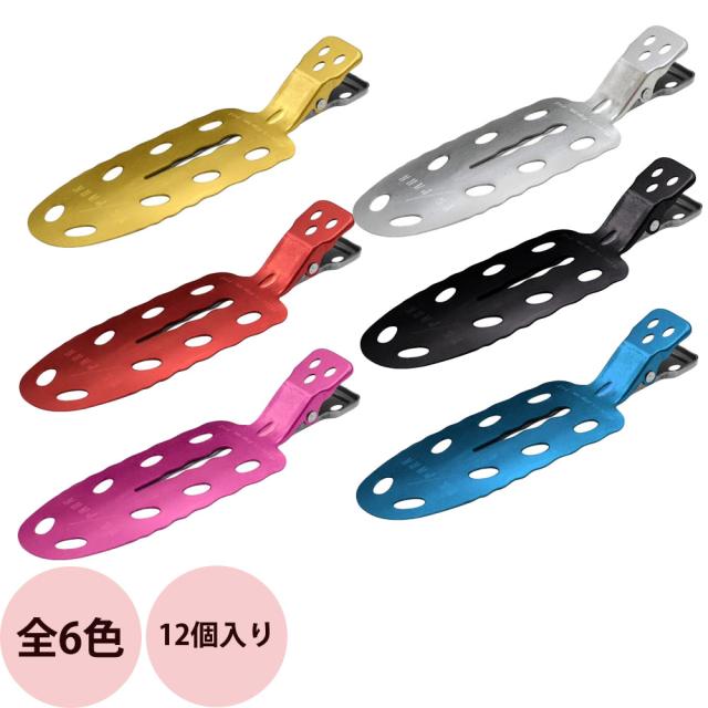 | 商品説明 | アルマイト仕上げにより表面の硬度が上がり、傷も付きにくいヘアクリップ。 持ち手に穴が空いているため、手が滑りにくく開閉しやすい仕様。オール金属で壊れにくく、軽量でズレにくく落ちにくいのも特徴。 |