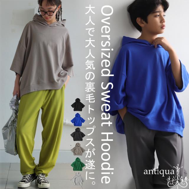 【検索ワード】半袖 フード付きパーカー パーカー 子供服 ジュニア トップス 綿100 トレーナー スウェット 無地 フード付き ショート丈 シンプル クルーネック 丸首 フーディー リブ 前後差 ドロップショルダー ゆったり ラフ 裏毛 裏毛パーカー 裏毛プルオーバー 裏毛トップス 薄手 綿 コットン 着痩せ 細見え プルオーバー 親子 リンクコーデ 親子コーデ お揃い おそろ オソロ ファミリー 高学年 中学生 中高生 140cm 150cm 160cm 双子コーデ プレゼント お祝い 出産祝い 春 夏 キッズ 男の子 女の子 ガール ガールズ 通学 お出かけ お洒落 アンティカ antiqua おしゃれ 可愛い かっこいい