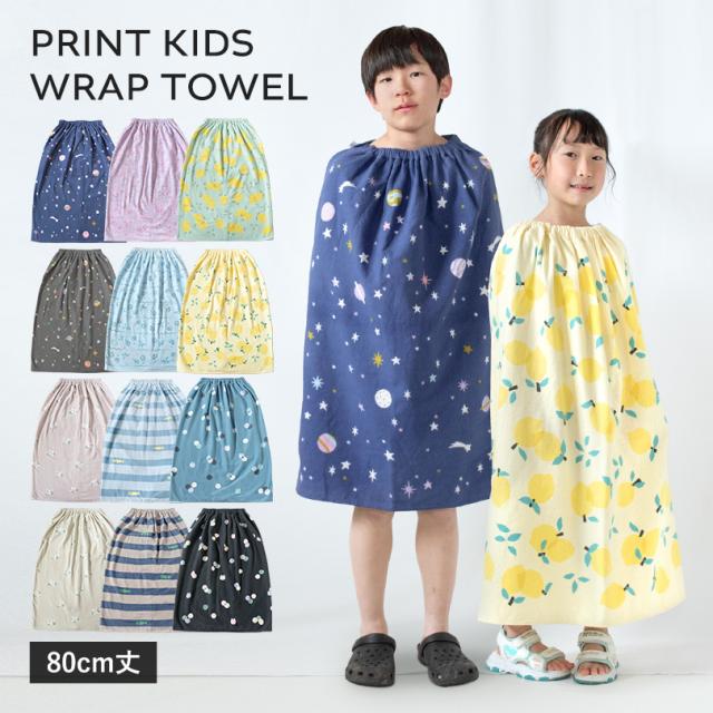 ラップタオル 80cm キッズ プールタオル プリント柄 女の子 男の子 小学生 巻きタオル 綿100% 薄手 (ポスト投函) 送料無料 着替えタオル ビーチタオル 子供用 水泳 スイミング 海