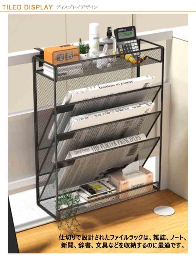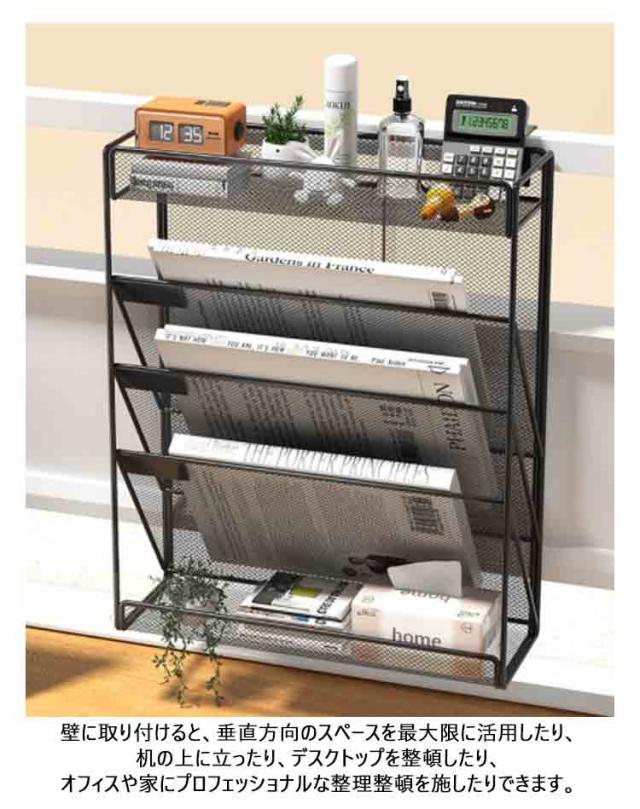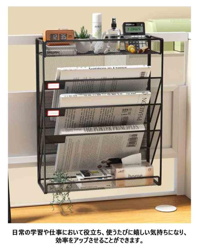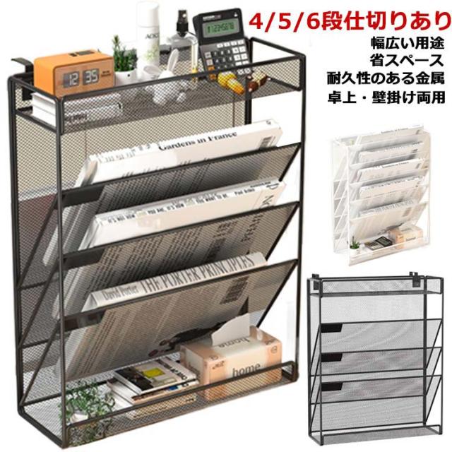 4段 5段 6段 卓上収納ラック 壁掛け ファイルラック 書類トレー メッシュメタル レタートレイ 多機能 掛けフック付き 新聞/雑誌/A4ファイ