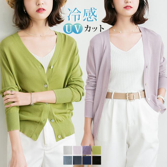 <72H限定・1点あたり1,550円!2点同時購入&クーポン利用で>カーディガン UVカット 春新作 長袖 薄手 カーデ ひんやり 涼しい レディース ニット トップス Vネック 紫外線対策 サマーカーディガン ゆったり ニットカーディガン オフィス 冷房対策 日焼け止め 無地 羽織り