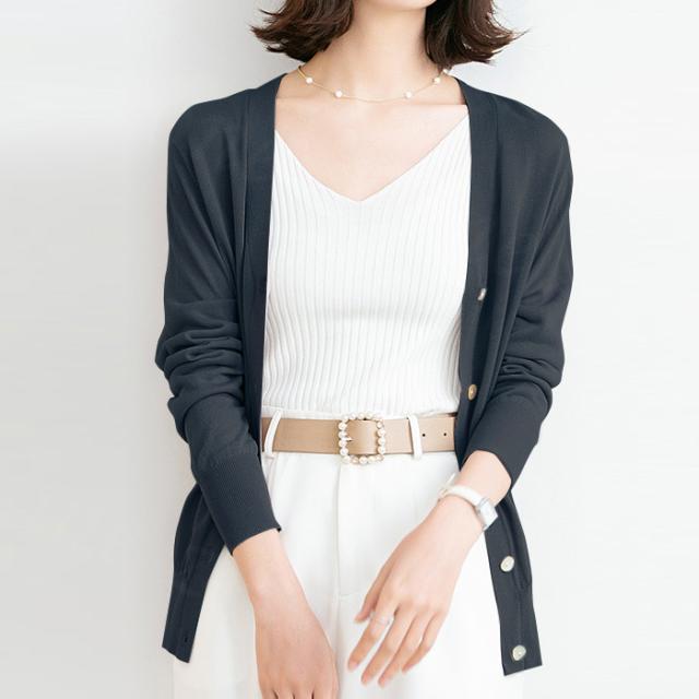 接触冷感で速乾性抜群、お手入れ簡単なカーディガン。