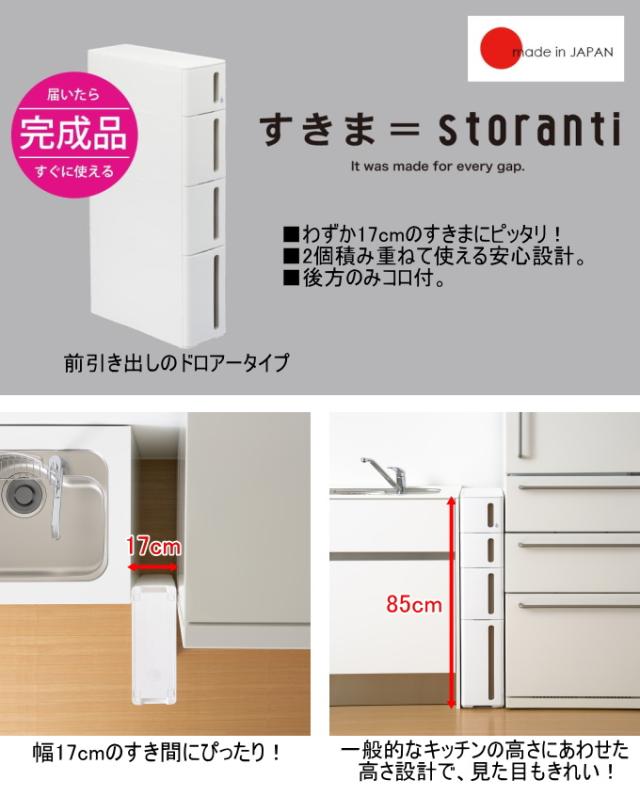 隙間収納ストッカー スリム 17cm ドロアータイプ 1個入 送料無料 日本製 収納ケース 収納ボックス 収納 隙間 隙間収納 すきま 17cm 洗面所 キッチン ストッカー ドロアー 引出し 完成品 収納用品 ホワイト ブラック サンカ SANKA ストランティ storanti