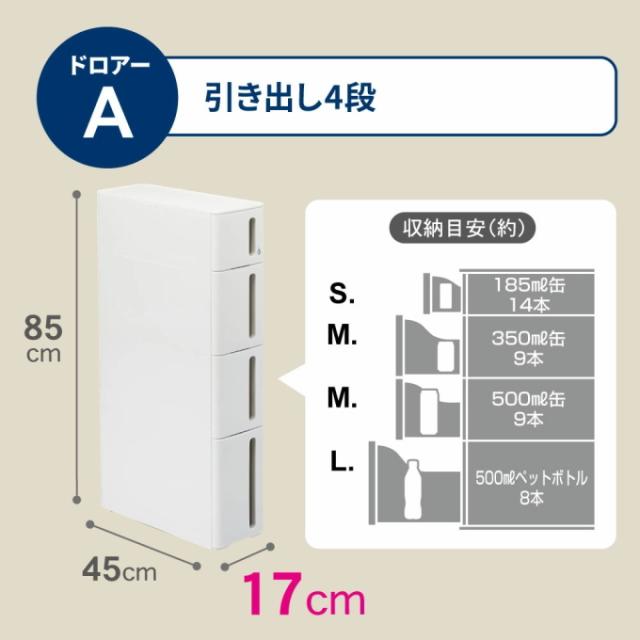 | 収納目安 | S:185ml缶×14本 M:350・500ml缶×9本 L:500mlペットボトル×8本 LL:1.5・2Lペットボトル×4本 |