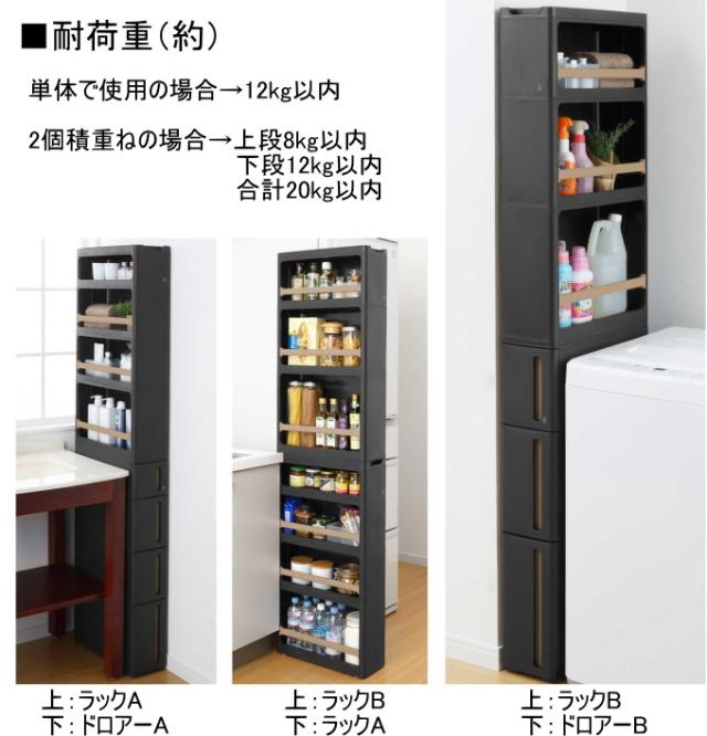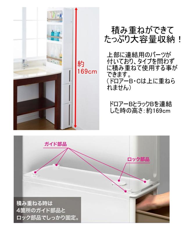 | サイズ | 外寸:(約)幅170×奥450×高850mm ラックBとドロアーBを連結した時:(約)幅170×奥450×高1690mm |
