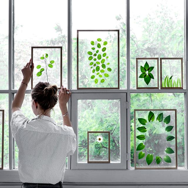 アクリル2枚にはさんで使う仕様。壁や背景の色が見えるので、ひとまわり大きいサイズを選んで余白を楽しむのがおすすめです。