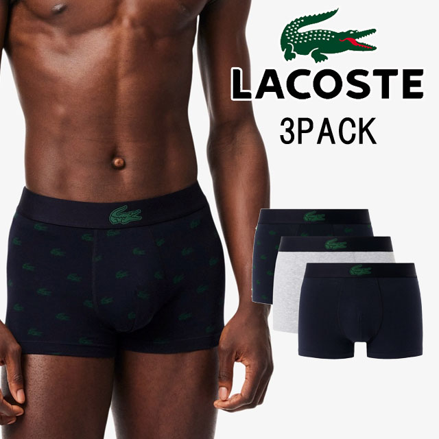 送料無料 ボクサーパンツ メンズ SS 春夏 新作 夏新作 秋新作 人気 流行 定番 2025 ラコステ LACOSTE 5H5154 I90 3枚組 アンダーウェア 3パッククロコダイルプリントトランクショーツ パンツ 下着 インナー 3枚セット トランクス ネイビー