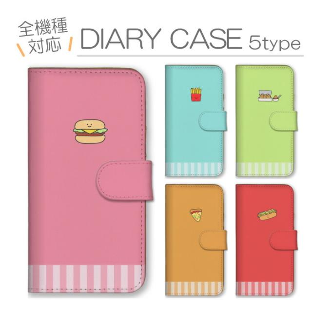 スマホケース 全機種対応 手帳型 携帯ケース アンドロイド携帯カバー ファストフード イラスト ハンバーガー ポテト ナゲット イラスト ゆるい ケース