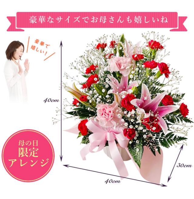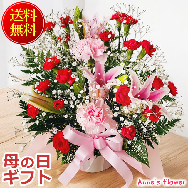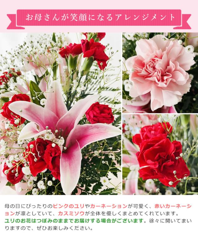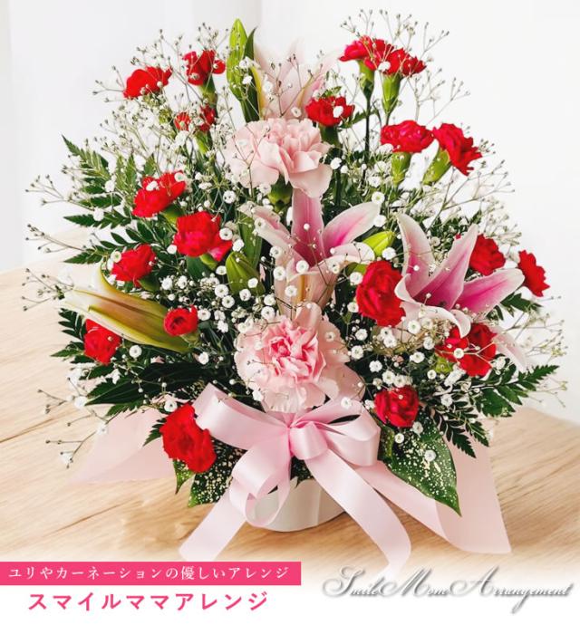 早割開催中! 母の日 花 ギフト プレゼント スマイルママ アレンジ 送料無料 ピンク ユリ カーネーション カスミソウ 母の日 フラワー アレンジメント