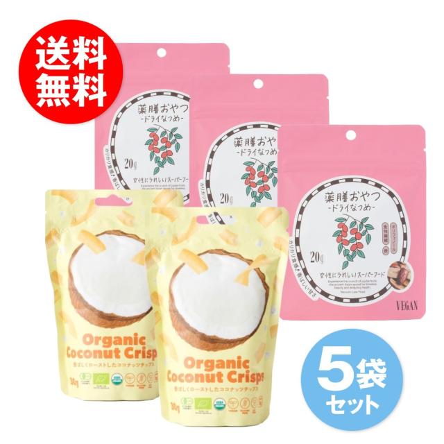 ■売れ筋商品5袋セット■オーガニックココナッツクリスプ 30g×2袋 薬膳おやつドライなつめ20g×3袋 Organic Coconut Crisps ブラウンシュガーファースト 薬膳おやつ ベジキッチン VEGAN ヴィーガン グルテンフリー ギルトフリー