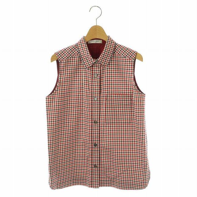 【中古】アドーア ADORE チェック柄ノースリーブブラウス シャツ 前開き コットン 38 赤 白 /NR ■OS レディース