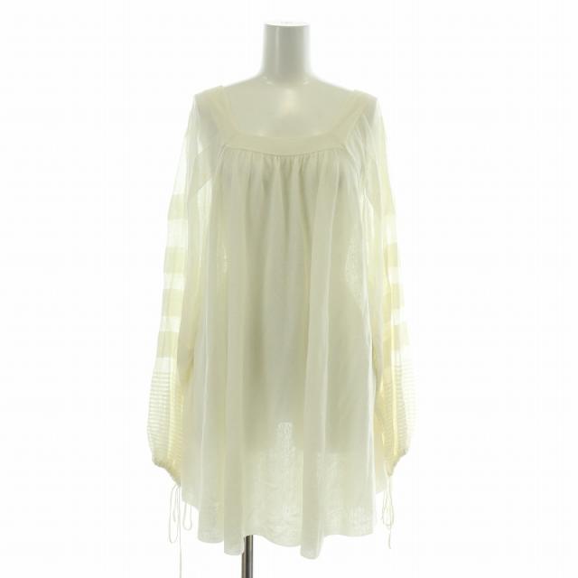 【中古】ドゥロワー Drawer カフタンニット シャツ ブラウス 長袖 スクエアネック ストレッチ 薄手 1 白 ホワイト