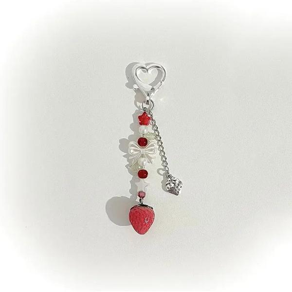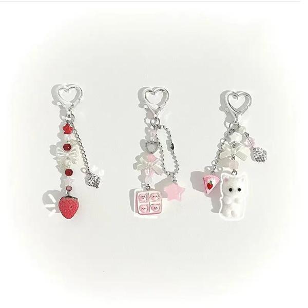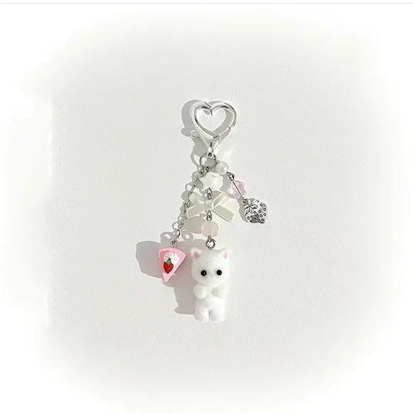 かわいい猫のキーホルダー,猫のキーホルダー,イチゴのケーキ,彼女へのギフト,1パーツ