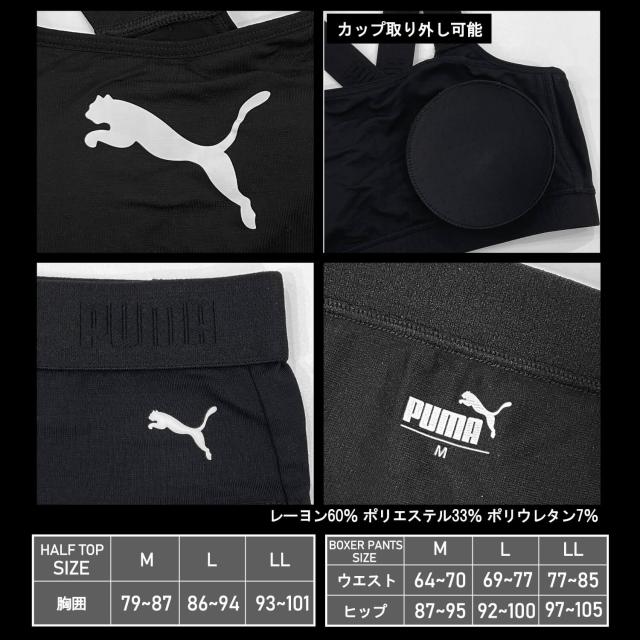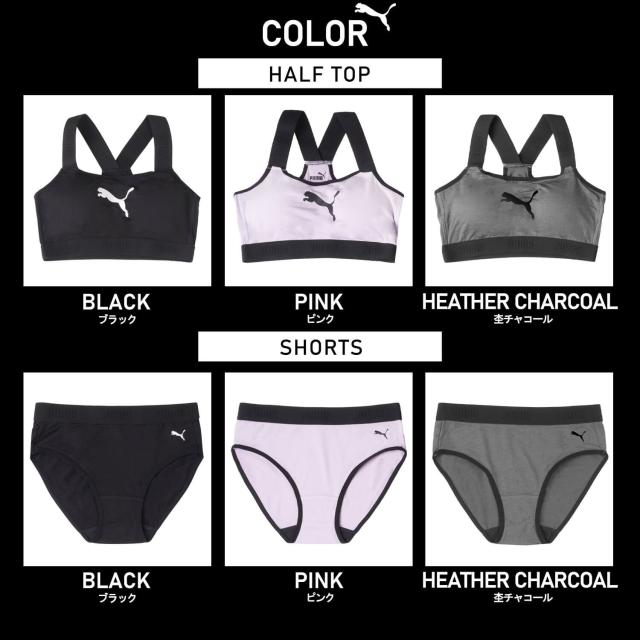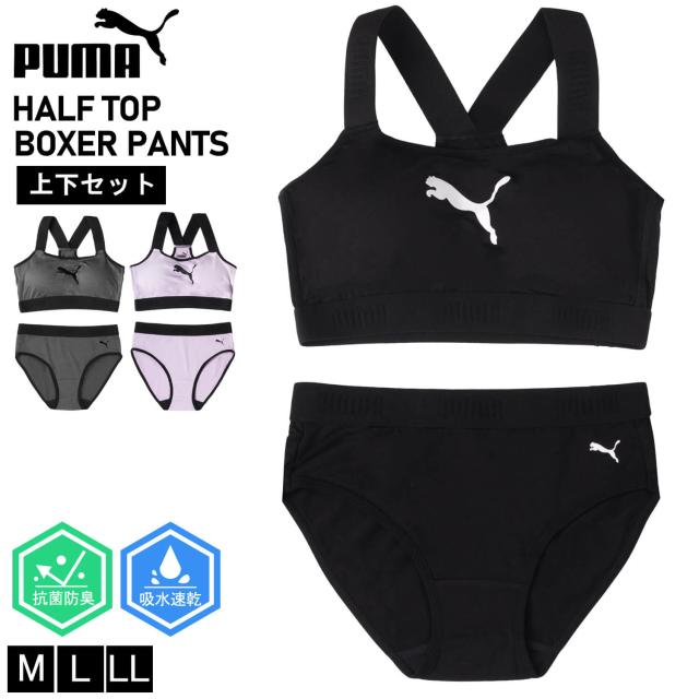 PUMA プーマ ジュニア ハーフトップ ショーツ 上下セット カップ取り外し可 速乾 スポーツブランド インナー アンダーウェア ブラジャー スポブラ パンツ セット ガールズ 女の子 小学生 中学生 黒 紺 2025ss