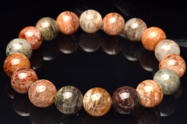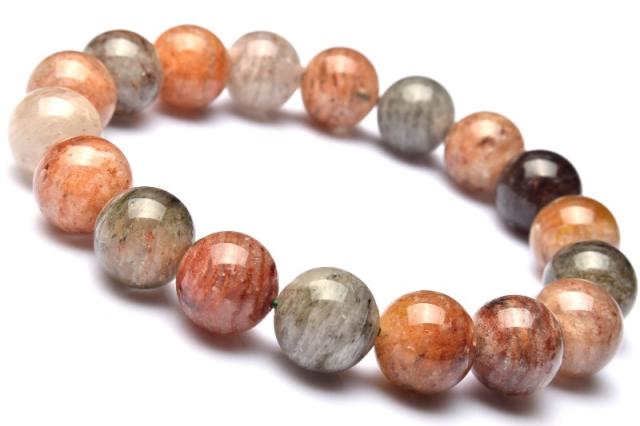 【1点物】地層模様◇マルチカラー ガーデンクォーツ 11.5mm ブレスレット 健康運・金運・仕事運【ネコポス送料無料】_M9567