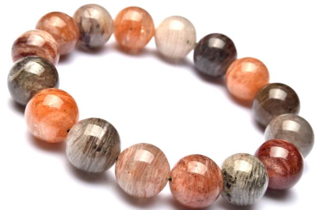 【1点物】地層模様◇マルチカラー ガーデンクォーツ 13-13.5mm ブレスレット 健康運・金運・仕事運【ネコポス送料無料】_M9572