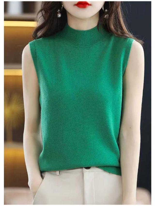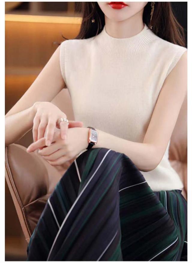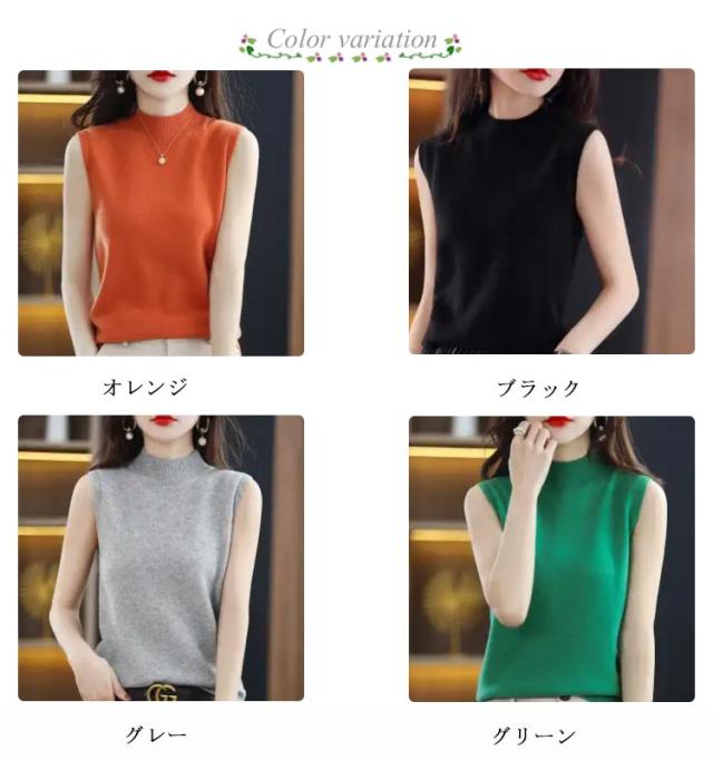 サマーニット ハイネック 洗えるニット 大人 ニットベスト ニットタンクトップ ノースリーブ 無地 タートルネック ニット 春 オフィスカジュアル インナー ニットセーター プルオーバー おしゃれ カットソー ニットソー 母の日 夏 ノースリーブ 秋