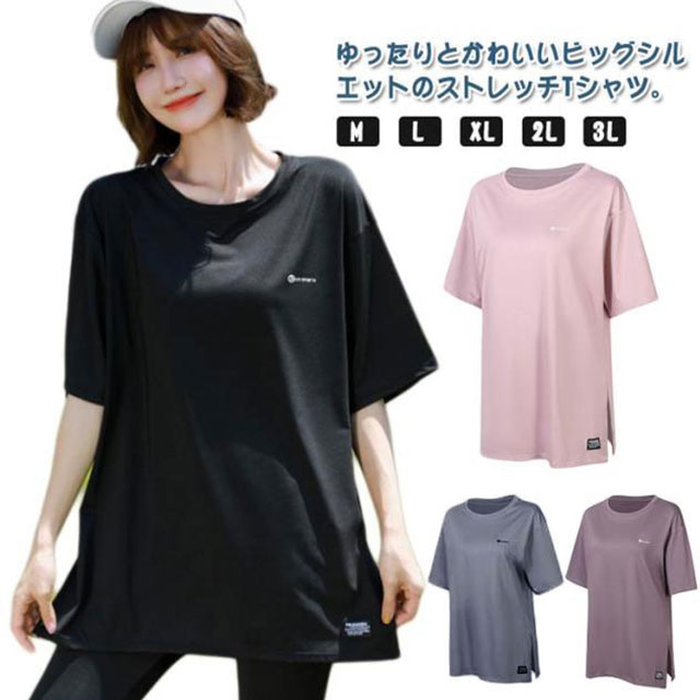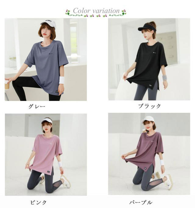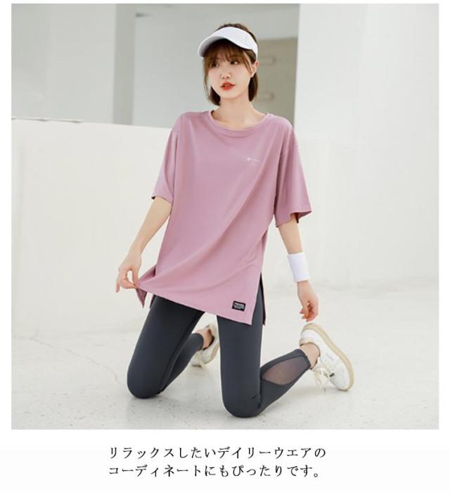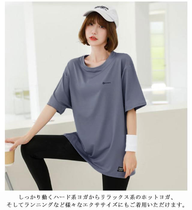 半袖 ピラティス ヨガtシャツ ヨガウェア ロング丈 トップス 運動着 半袖tシャツ スポーツウェア おしゃれ レディース 体型カバー ウェア レディース 薄手 丈長め 伸縮性 スポーツ フィットネス