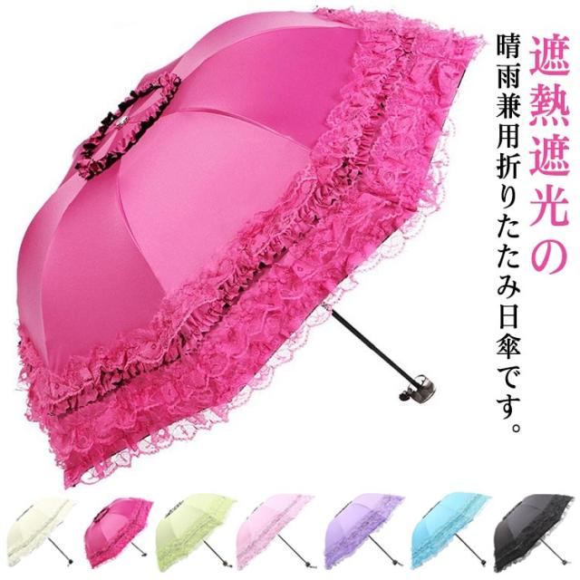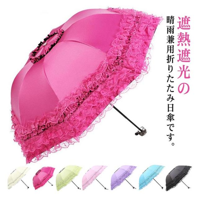 プレゼント 遮光 折り畳み傘 完全遮光 フリル 紫外線カット 晴雨兼用 折りたたみ レース UVカット 無地 遮熱 軽量 撥水 女性 日傘 8本骨 紫外線対策 日焼け対策 折りたたみ傘 レディース UPF50+ おしゃれ 母の日 日傘 レース日傘 可愛い おしゃれ