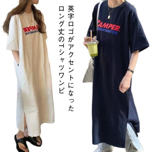 ルームウェア ワンピース 春夏 Tシャツ ゆったり 春 レディース Tシャツ 大人 かわいい 韓国ファッション チュニック ロゴ Tシャツワンピース カジュアル シンプル 楽ちん 着回し