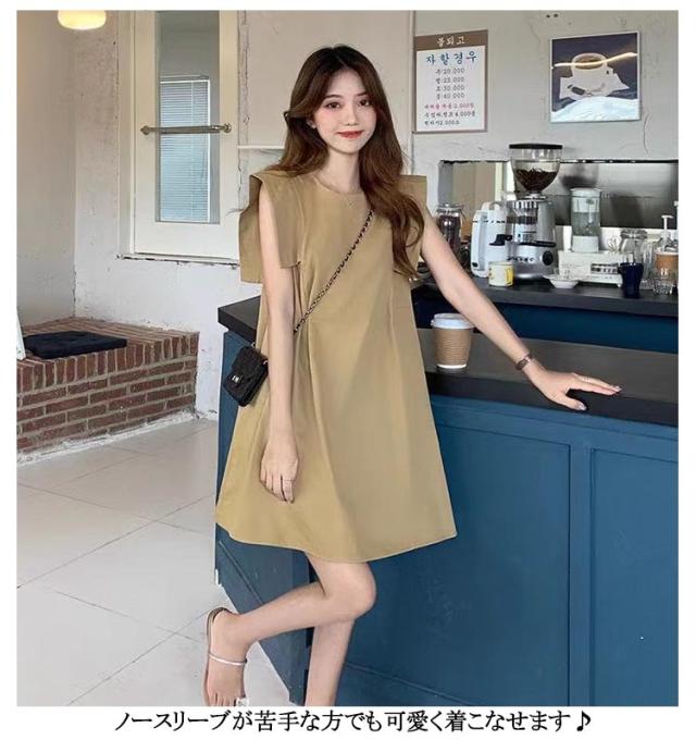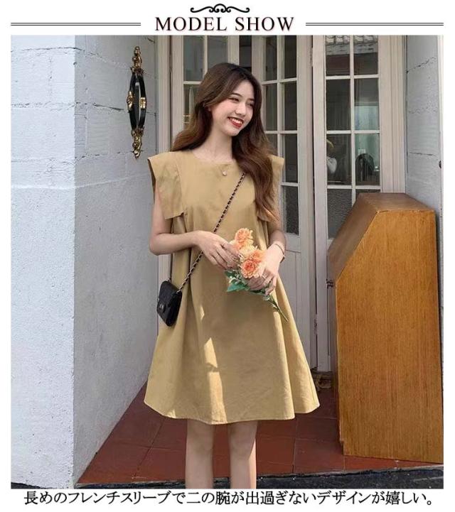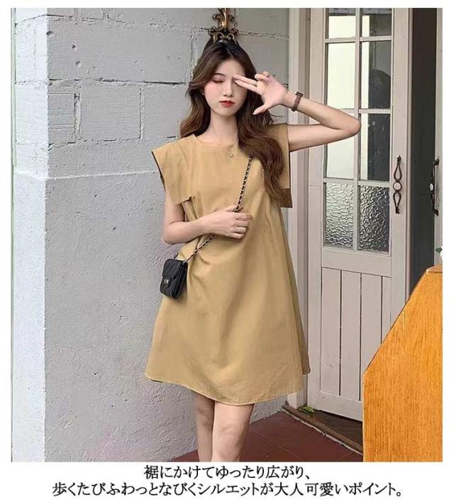 ワンピース クルーネック 半袖 膝丈ワンピース チュニックワンピース レディース フレンチスリーブ 送料無料 ノースリーブ Iライン フレア ゆったり 送料無料 カジュアル きれいめ お洒落
