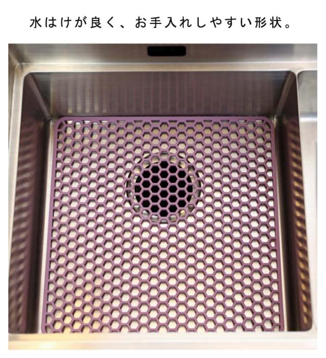 | 柔らかいシリコーンゴム製シンクマット。 熱やキズからシンクを保護。 テーブルのキズ・音の防止。 ガラス・陶器などのキズ防止。 水はけが良く、お手入れしやすい形状。 小さめのサイズなのでミニキッチンでも使用できる。 | |