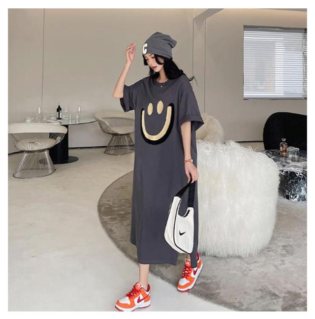 | 「こなれ感」たっぷりのビッグTシャツロングワンピース。 ゆったりシルエットのノンストレスな着心地♪ フロントの笑顔プリントがポイント。 1枚ではもちろん、パンツとのレイヤードももちろん楽しめる実用性のあるアイテム。 部屋着やマタニティウェアなどに、ちょっとしたお出かけにも大活躍です。 | |