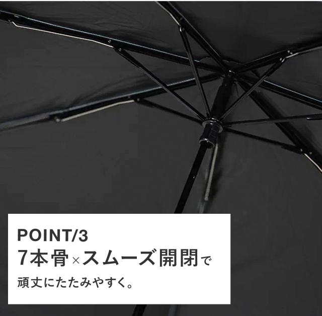 UVカット率100%、遮光率100%、遮熱効果を備え日傘としての機能はもちろん、しっかりと撥水が効いているため雨傘としての性能も文句ナシ。