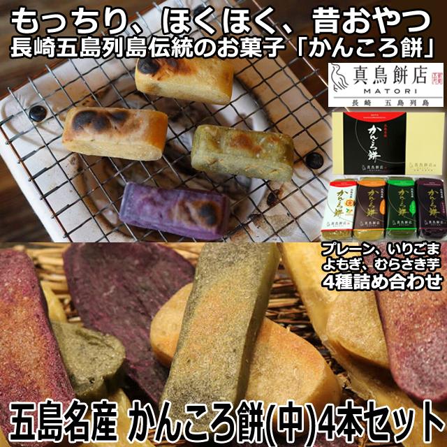 五島名産 かんころ餅(中)4本セット 真島餅店 190gx4 4種セット プレーン いりごま よもぎ むらさき芋 お菓子 和菓子 餅菓子 贈り物