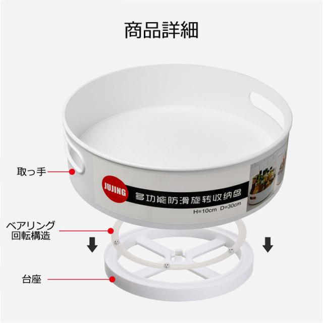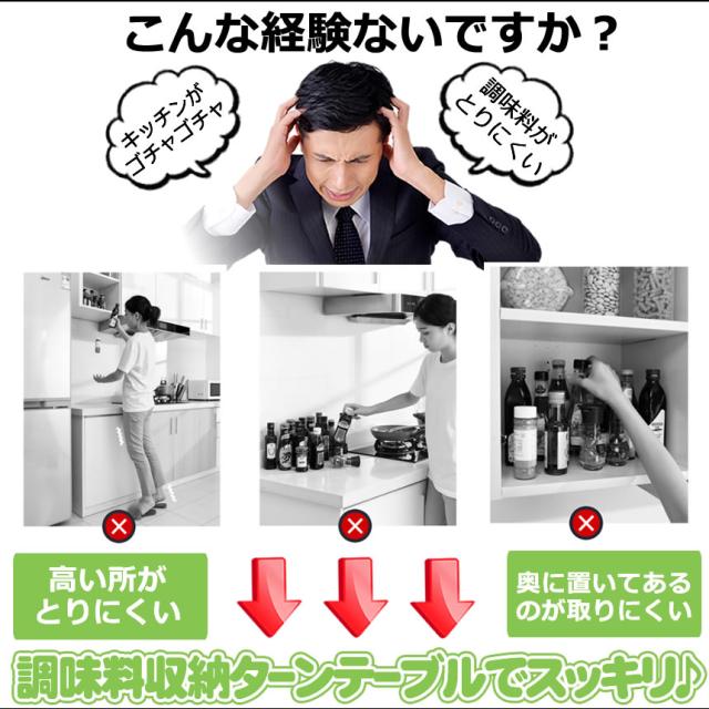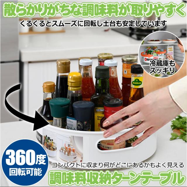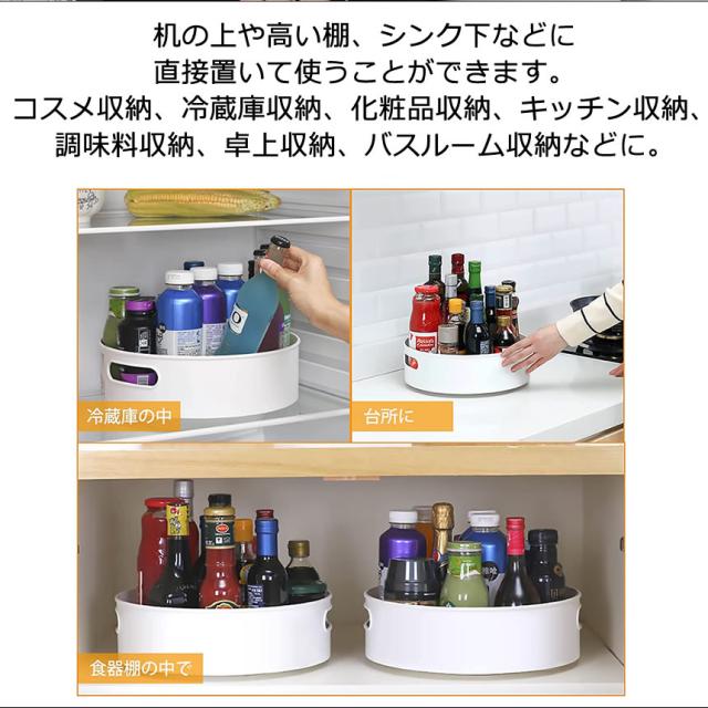 キッチン 収納 調味料 調味料ラック ターンテーブル スパイスラック 整理ボックス 調味料置き 回転トレー 回転調味料ホルダー 調味料収納トレイ 冷蔵庫収納 調味料トレイ 回る 化粧品収納 卓上収納 浴室 台所 省スペース 滑り止め 取っ手付き 組み立て不要