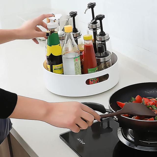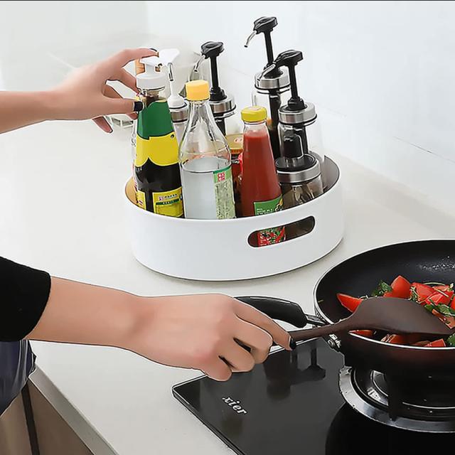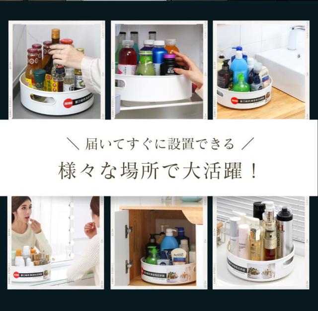片手でもスムーズに回転し、調味料やスパイス、コスメなどの小物を探す手間をグッと省いてくれます。