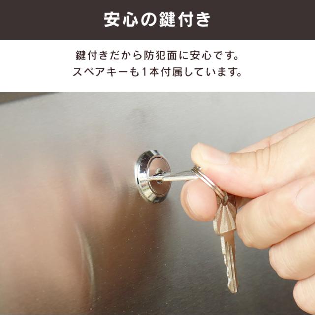 ・セキュリティ:鍵付きなので防犯面に安心です。また、スペアキーが1本付属しています。