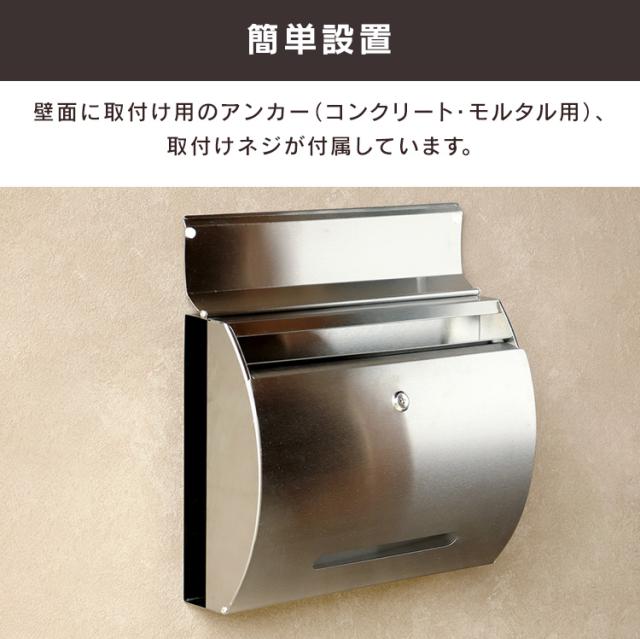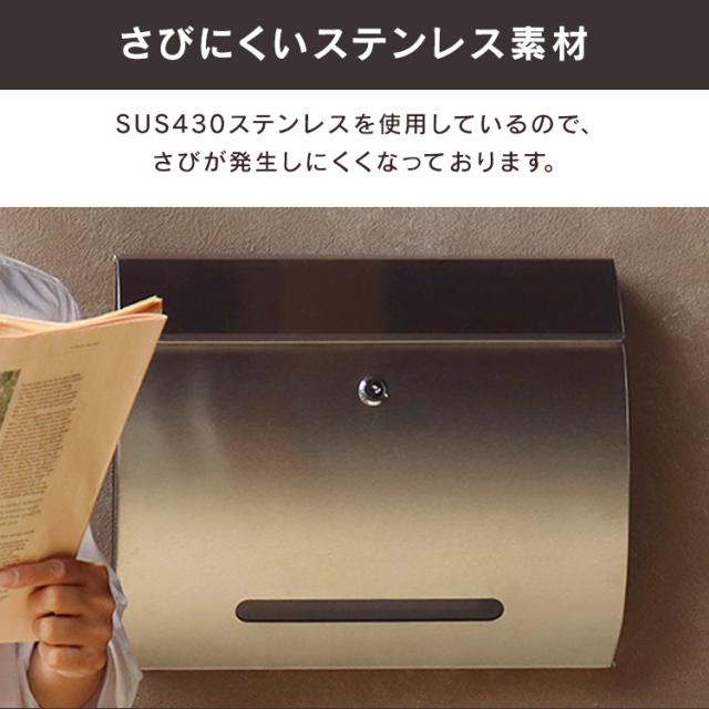 ポスト 壁掛け 郵便受け Mauro(マウロ) 壁掛けポスト ステンレス WM-043 MOJYU 【B】 壁掛けポスト MOJYU モジュ おしゃれ 北欧風 完成品 取り付け簡単 ガルバナイズド処理 Mauro マウロ 送料無料