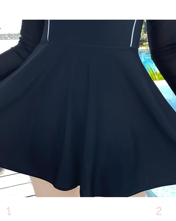 ワンピース水着 服みたいな 水着 長袖 無地 パッド付 レディース ラウンドネック 着痩せ シンプル セクシー 写真映え 撮影用 海 夏 サマー プール リゾート かわいい 旅行 温泉 大人 女性用 ジュニア 学生 女の子 ブラック ホワイト