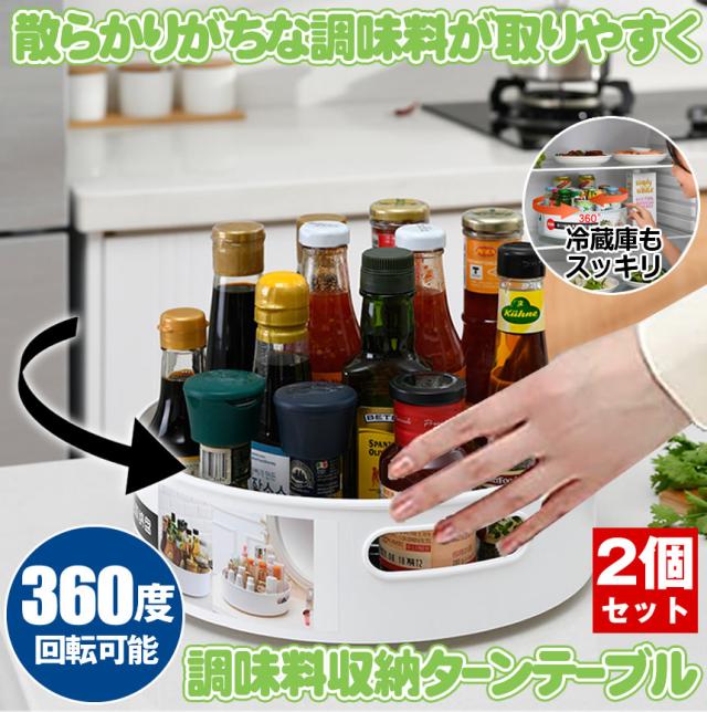2個セット キッチン 収納 調味料 調味料ラック ターンテーブル スパイスラック 整理ボックス 調味料置き 回転トレー 回転調味料ホルダー 調味料収納トレイ 冷蔵庫収納 調味料トレイ 回る 化粧品収納 卓上収納 浴室 台所 省スペース 滑り止め 取っ手付き 組み立て不要