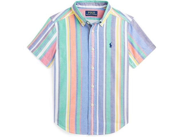 (取寄) ラルフローレン キッズ ボーイズ ストライプド コットン オックスフォード ショート スリーブ シャツ (トドラー/リトル キッド) Polo Ralph Lauren Kids boys Striped Cotton Oxford Short Sleeve Shirt (Toddler/Little Kid) Navy/Red Multi