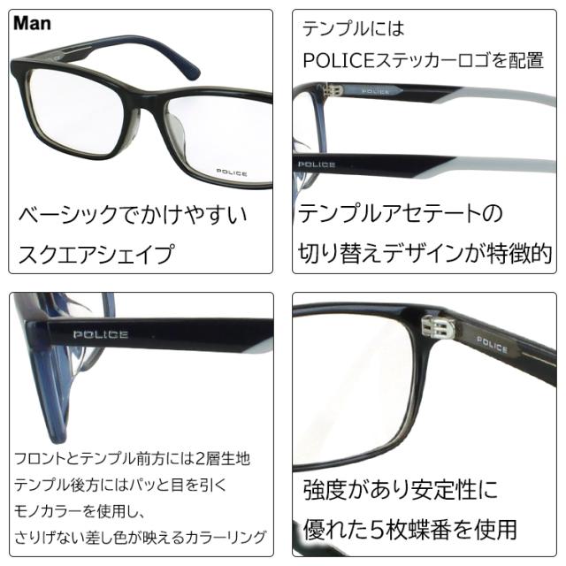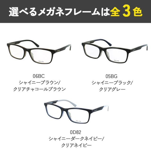 ポリス POLICE メガネ フレーム 眼鏡フレームのみ メンズ 男性 ブランド セルフレーム スクエア VPLP37J 06BC ブラウン 05BG ブラック 黒縁 0D82 ダークネイビー ベーシック 度付き対応 おしゃれ かっこいい