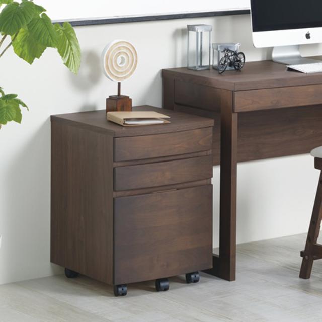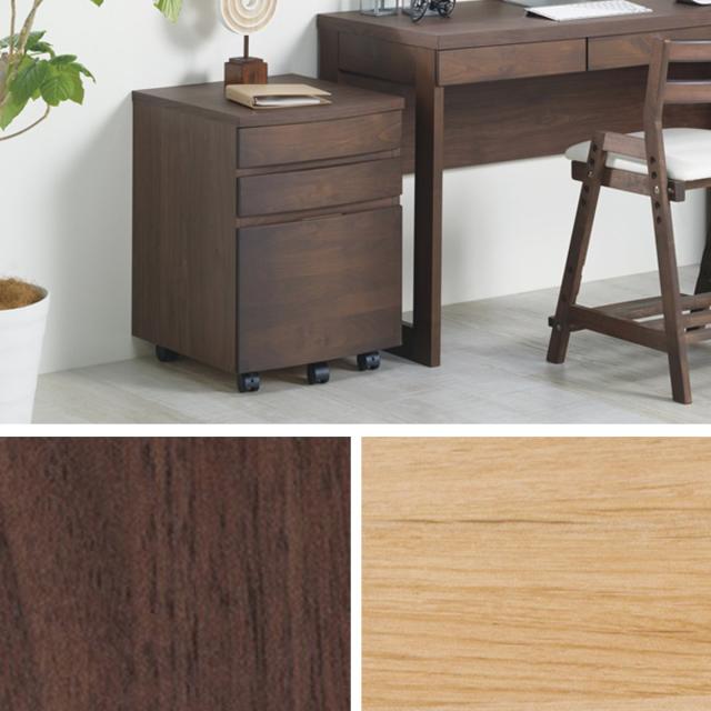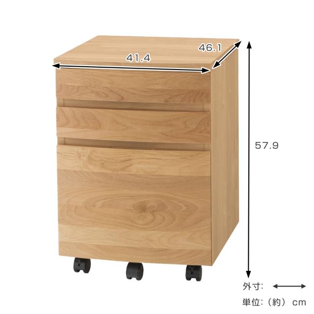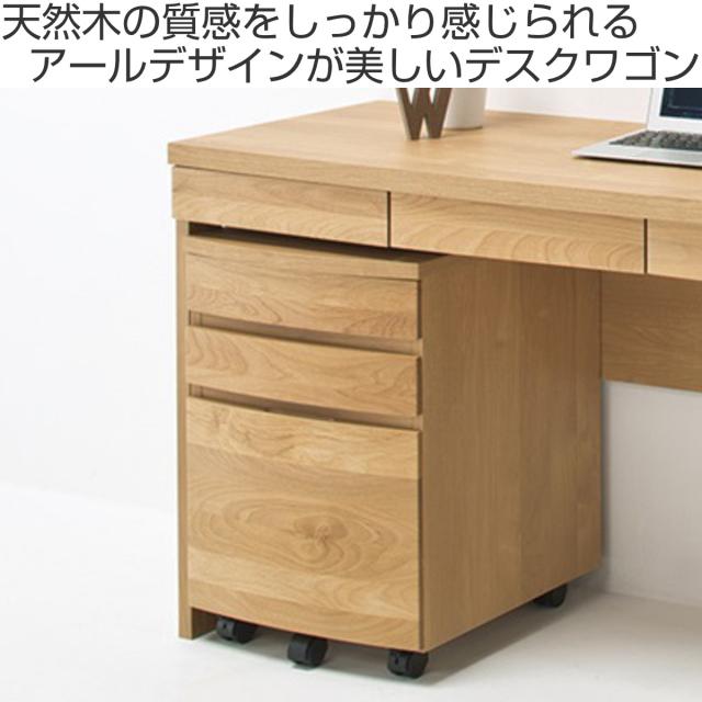 デスクワゴン キャスター付 3段 アール ( ワゴン サイドワゴン 木製 天然木 引き出し 収納 デスク下 完成品 日本製 サイドチェスト 脇机 キャビネット サイドキャビネット アルダー 書斎 書類整理 おしゃれ )