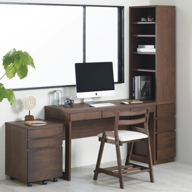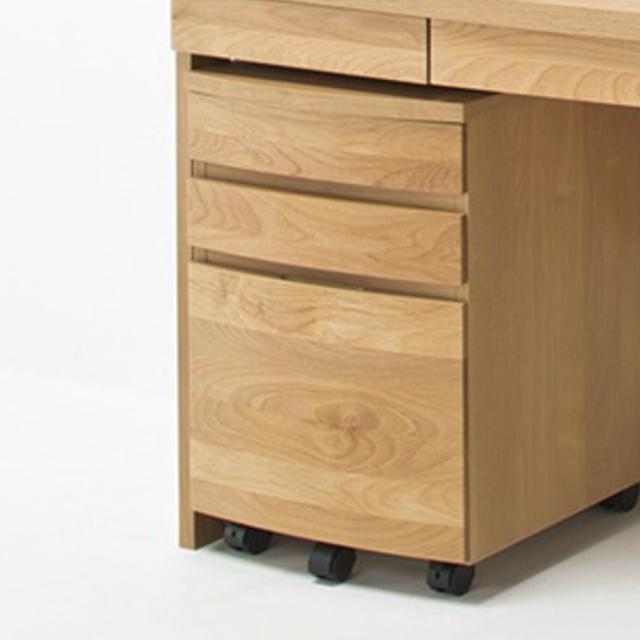 天然木の質感となめらかな曲線美が調和したデスクワゴン。無垢材を贅沢に使用しています。書斎からリビングやダイニング、ベッドルームまで幅広いシーンで活躍します。