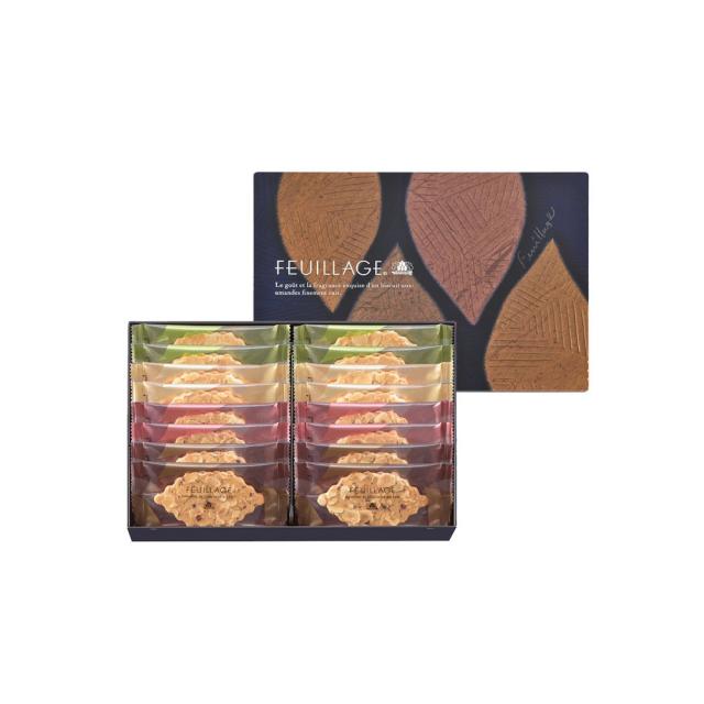 フランス語で「木の葉」を意味するクッキー。スライスナッツをしきつめてパリッと香ばしく焼き上げたクッキーにバランスよくチョコレートをサンドしました。チョコレートはナッツに合わせて相性のよいものを厳選。クッキーとナッツとチョコレート、それぞれの味と食感が繊細に重なり合います。内容量:16個入 製品内容:アーモンド&ミルクチョコレート4個、アーモンド&ホワイトチョコレート4個、ヘーゼルナッツ&ミルクチョコレート4個、ヘーゼルナッツ&スイートチョコレート4個