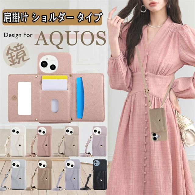 aquos wish4スマホケース ミラー付き AQUOSwish3ケース 四つ角 ショルダーストラップ付き AQUOSセンス9ケース sense10 sense9 sense6 wish4 sense8 wish3 R8 Pro sense7 ケース 鏡付き スマホ カード収納 背面ポケット スマホショルダー 韓国 おしゃれ 可愛い