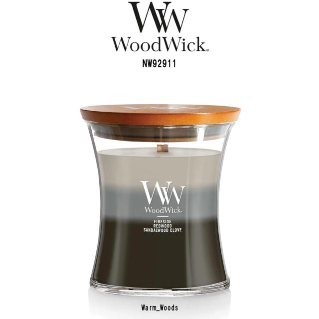 WoodWick(ウッドウィック)アロマキャンドル 【ブランド箱なし】 3層 トリロジー アワーグラス ジャーM ウォームウッズ 燃焼音 ギフト Warm Woods NW92911
