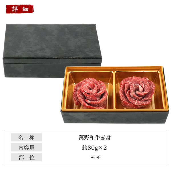 肉 ギフト A5 萬野和牛 焼肉用 黒毛和牛 赤身160g(80g×2)やきにく萬野 薔薇 モモ もも肉 もらって嬉しい お取り寄せグルメ 食べ物 お肉 美味しい 贈り物 贈答用 贈答品 2026年 ギフト 直送 送料無料 食べきりサイズ