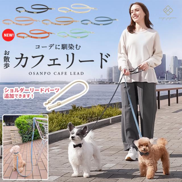 お散歩カフェリード\ショルダーリードパーツ追加できます/犬 リード 小型犬 合成皮革 迷子防止 脱走防止 おでかけ 丈夫 頑丈 おしゃれ 合皮 チワワ マルチーズ ペット用品 ギフト プレゼント 人気 e.x.p.japon チワワ リード ペットリード