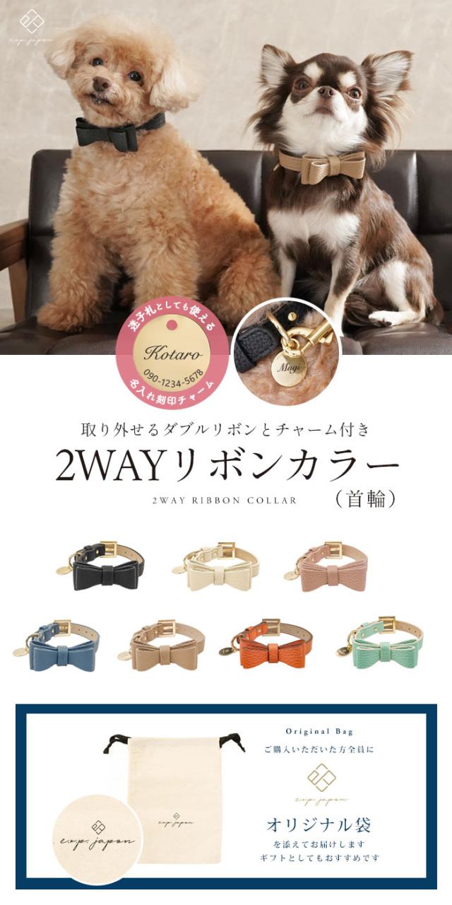 2WAYリボンカラー \ダブルリボン追加できます♪/ 犬 首輪 小型犬 合成皮革 バックリボン お散歩 おでかけ お名前入り 迷子札 電話番号 おしゃれ 合皮 くすみカラー ペット用品 ギフト オーダーメイド セミオーダー プレゼント e.x.p.japon 犬 首輪 リボン カラー